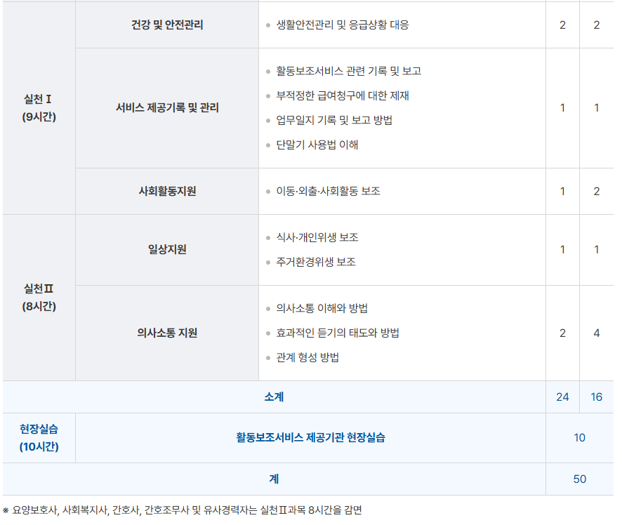 - 실무 학습: 활동보조, 위기 대처 방법 등 실전 능력 습득