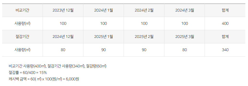- 절약량이 많을수록 캐시백 금액도 증가합니다.