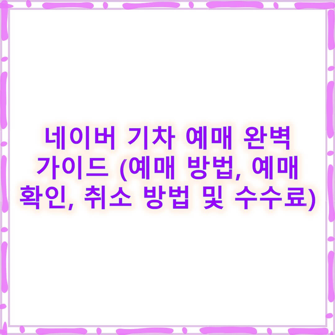 기차표 예매, 더 이상 복잡하게 고민하지 마세요! 네이버에서 한 번에 예매, 확인, 취소까지 완벽하게 하는 방법을 알려드립니다.1. 네이버 기차표 예매란?요즘은 온라인으로 기차표를 예매하는 게 일상이 되었죠. 특히 네이버 기차예매는 사용자 친화적인 인터페이스와 빠른 처리로 많은 분들이 애용하는 플랫폼입니다.KTX, ITX, 무궁화호까지 모두 예매 가능하며, 별도의 회원가입 없이도 간편하게 이용할 수 있습니다.2. 예매 방법준비물네이버 계정 (로그인이 필요합니다)결제를 위한 카드 또는 간편결제 수단 (네이버페이 추천)예매 절차네이버에 접속: 네이버 검색창에 ‘네이버 기차예매’를 검색합니다.‘기차예매’ 서비스 선택: 검색 결과에서 ‘기차예매’ 바로가기를 클릭합니다.출발역과 도착역 입력: 날짜와 시간까지 선택..