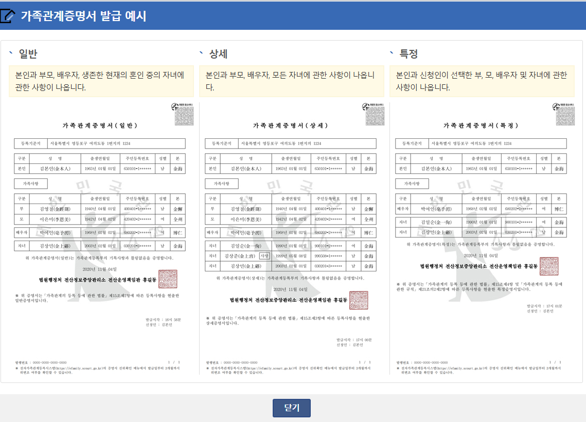 - 본인 확인 필수: 가족관계증명서는 민감한 개인 정보가 포함된 문서이므로 본인 확인 절차가 필수입니다.