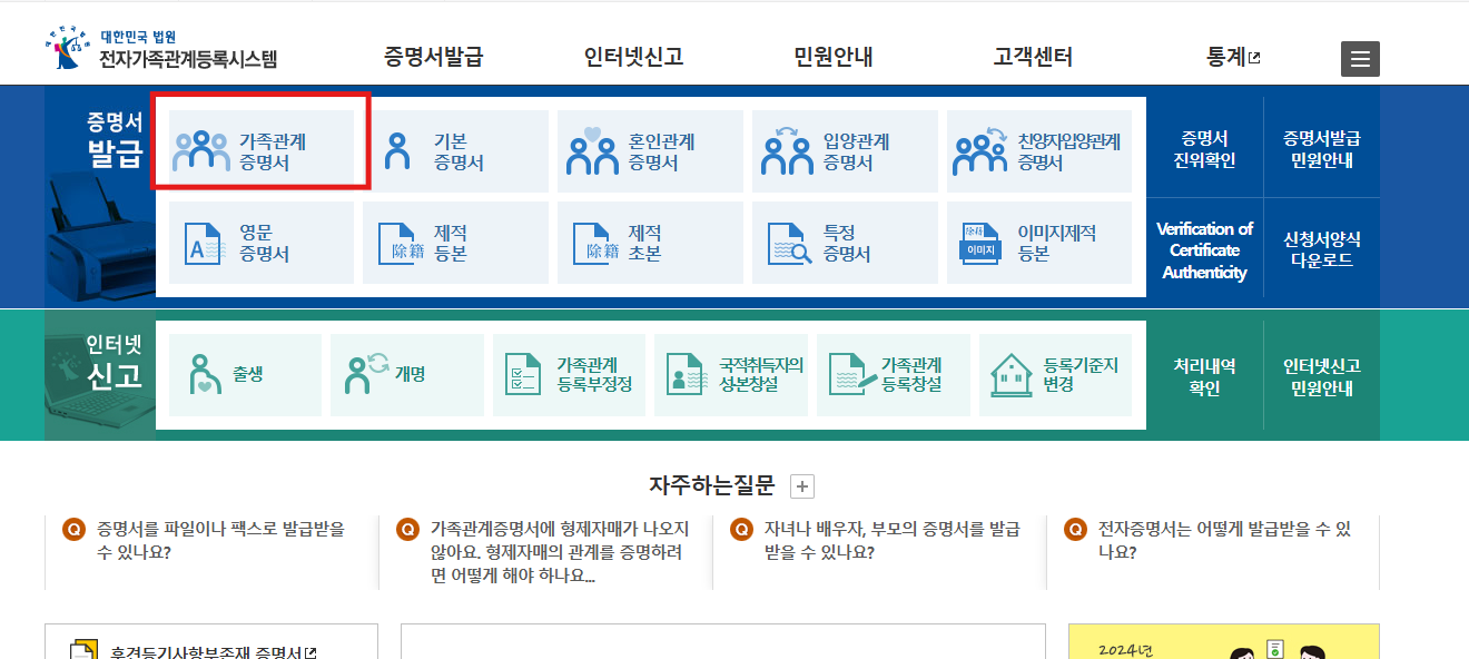 가족관계증명서 발급 방법