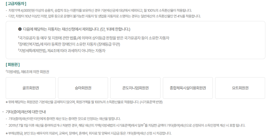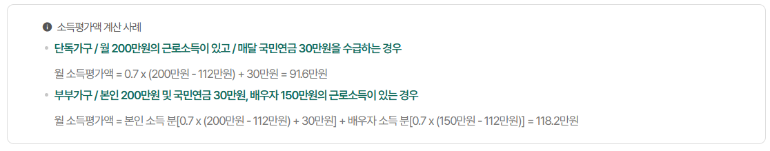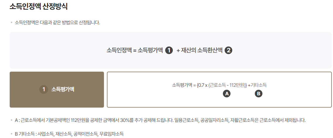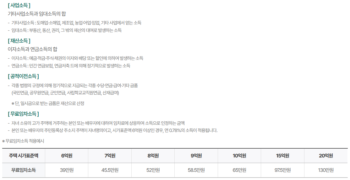 - 소득인정액은 월 소득, 재산(주택, 금융자산 등)을 종합적으로 고려하여 계산됩니다.