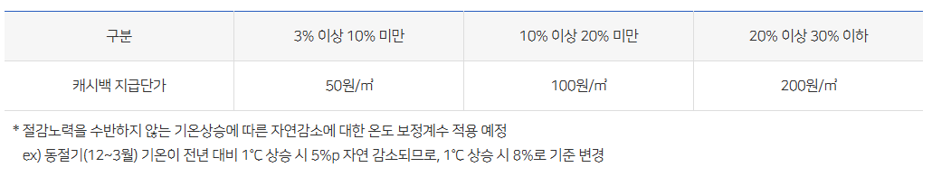 - 절약량이 많을수록 캐시백 금액도 증가합니다.