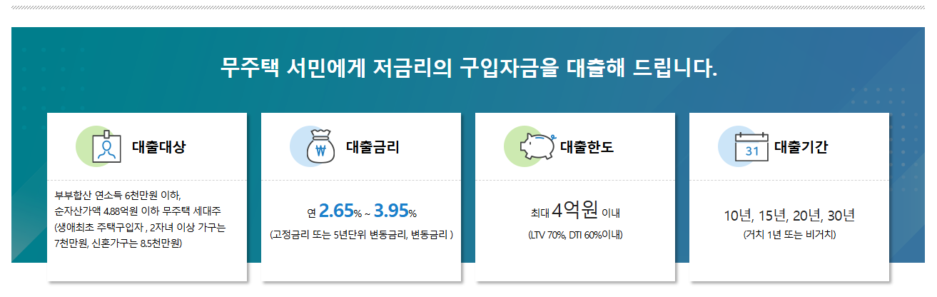 - 무주택자: 본인과 배우자가 무주택 상태여야 함