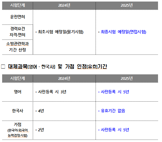 - 선택과목: 소방학개론, 소방관계법규, 행정법, 사회, 과학, 수학 (중 2과목 선택)