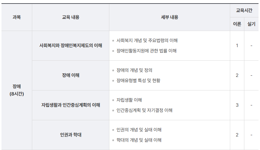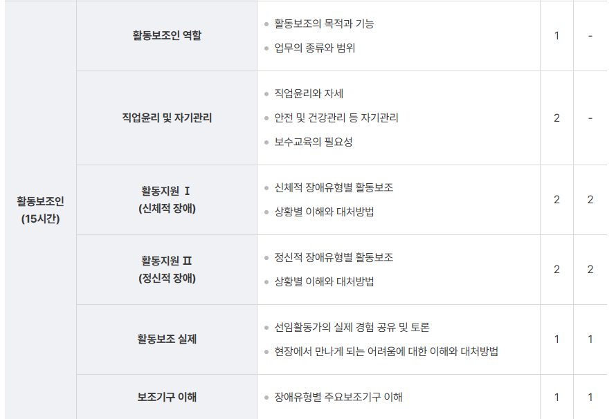 - 이론 교육: 장애인 인권, 활동보조 방법 등